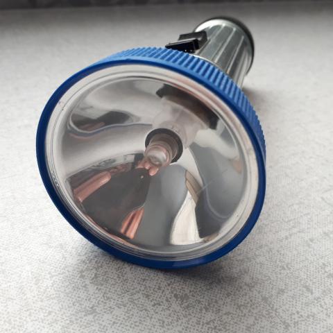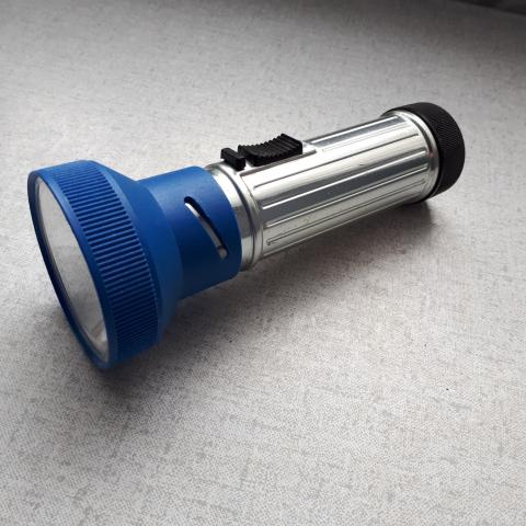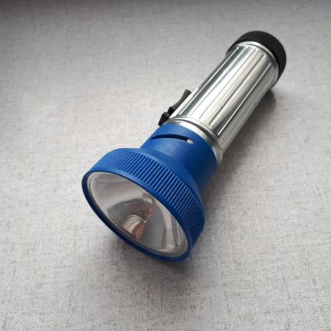 senas islaikytas prozektorius,kaip naujas. veikiantis. jokios korozijos nera. viskas svaru. dedasi 2vnt dideles baterijos.