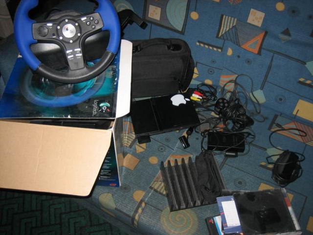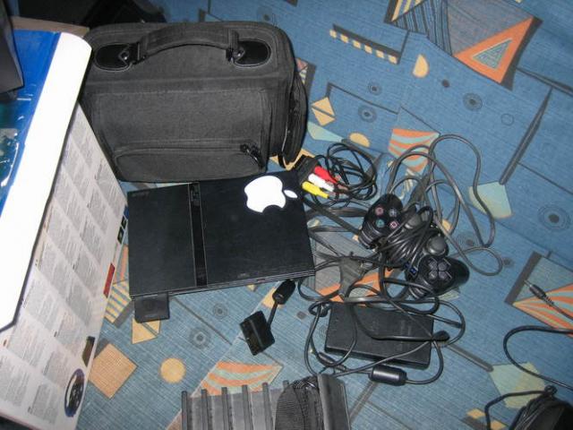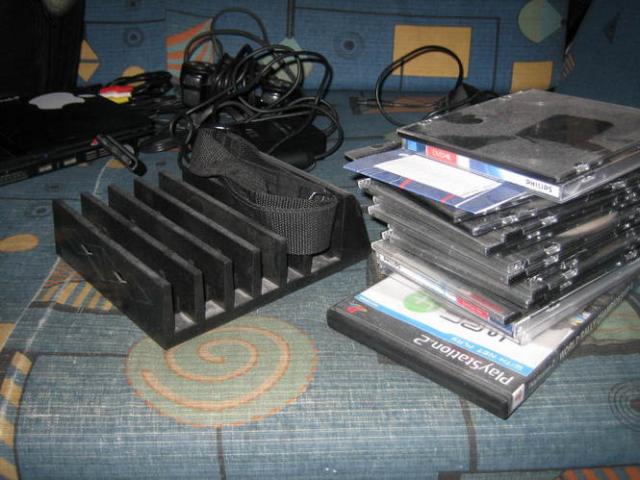 cipuotas ps2 slim,veikiantis. I komplekta ieeina logitech beveik naujas vairas su pedalais,dvd pultelis,pultas,8mb memory card,spiceliai jam skirta tašė,apie 20 zaidimu,stovas jam ir zaidimams,visi laidai. mano tel- 863085194