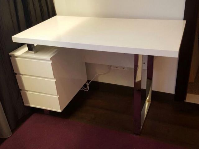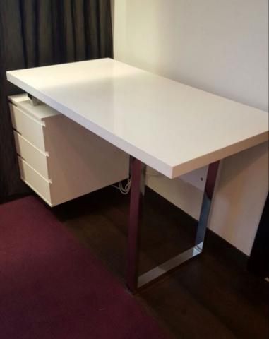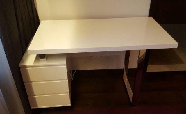 Parduodu emale dengtą baltą rašomąjį stalą. Naudotas, tačiau puikios būklės. Mažas ir kompaktiškas, tad puikiai tiks, jei norima sutaupyti vietos. Pirktas Berry balduose.