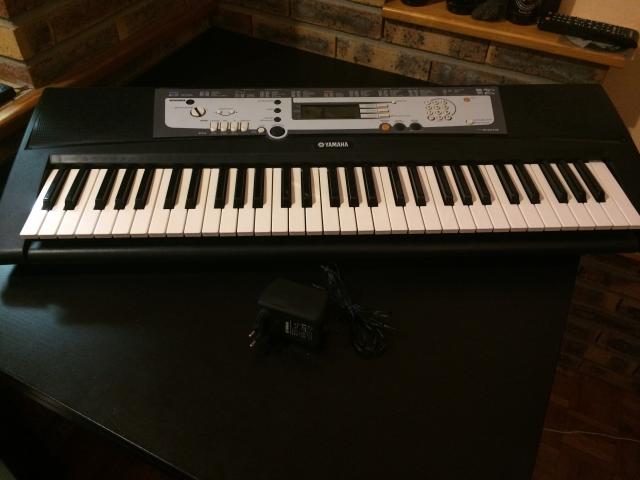 Mergaitė mokėsi YAMAHA muzikos mokykloje ir namie ruošdavo muzikos namų darbus. Įrenginys labai tvarkingas, viskas veikia. 61 klavišas, 100 stilių, 375 balsai, kurių tarpe XG Lite, 32 polifoninės melodijos, skystų kristalų ekranas*,OTS kiekvienam stiliui po vieną, 102 demonstraciniai kūriniai, 9 reverberacijos tipai, MIDI IN/OUT; Yamaha educion suite mokymo sistema. *ekranas kuriame galima matyti natas bei kuri klavišą reikia spausti (mokantis įrašytus kūrinius).