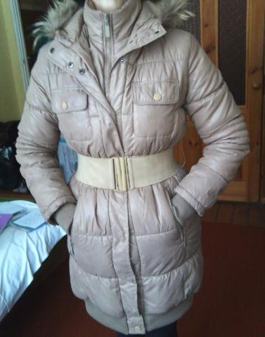 Puikios būklės, su diržu, niekur nesuplyšęs, šiltas, S/M dydžio, smėlio spalvos.