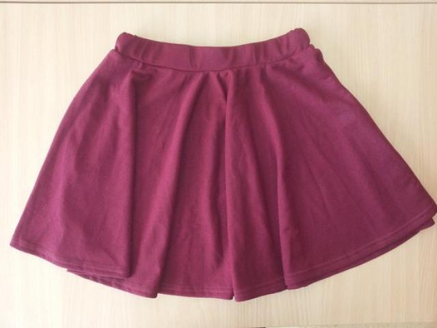 Labai dailiai krenta, bordo - vyšninės spalvos. L dydis, tačiau pati nešioju XS dydį, juosmens srityje įverta guma. Universalus dydis.