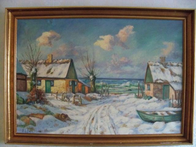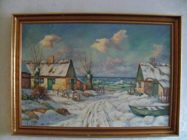 Puikios būklės paveikslas, tapytas ant drovės. Gražus žiemos peizažas. Paveikslas didelis 98 * 65 cm be rėmelių. Rėmeliai mediniai. Su dailininko parašu. Parduodamas su rėmeliais. Kaina derinama (proto ribose).