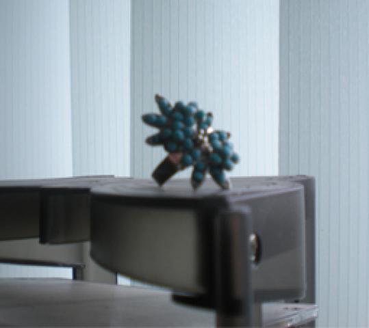 Pukus, dailus gana didelis žiedas :) Padarytas su žydrais "karoliukais" Labai dailus, nenešiotas.
