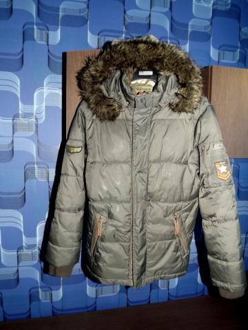 Nesiota, taciau gerame stovyje Pukine pusilge ruda striuke berniukui apie 165-170 cm ugiui Ilgis 65 cm, rankoviu ilgis 60 cm, peciu plotis 43 cm. , plotis apie 100 cm