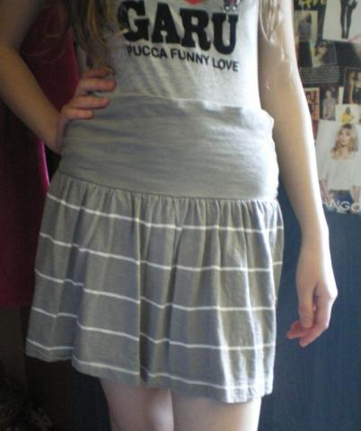 Žavus, trumpas, plačiu juosmeniu sijonukas. Būklė gera, nenudėvėtas, defektas tik tas, kad ant juosmens labai sunkiai pastebima dėmelė.