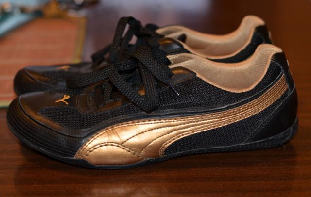 Nenunesioti Puma kedukai, juodi su auksinemis detalemis. Dydi raso 40, bet labiau 39-39,5.