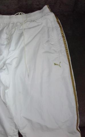Puma treninginės kelnės. Ties liemeniu yra guma, kelnių galai atsisega užtrauktuku, kišenės taip pat užsisega užtrauktukais. Defektai rusva dėmėlė ties šlaunimi į vidinę pusę. Pačių treninginių kelnių būklė labai gera. Sudėtis Sudėtis100% polisteris. Dydis US S. Ilgis 104cm Šlaunis 33cm Blauzda 23cm Liemuo 33cm