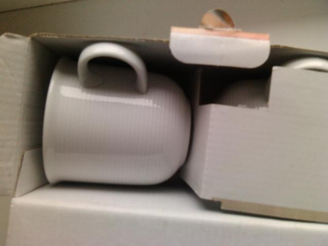Nauji, nenaudoti puodeliai, tačiau ilgai stovėjo tai dėžutė nebetokia graži.