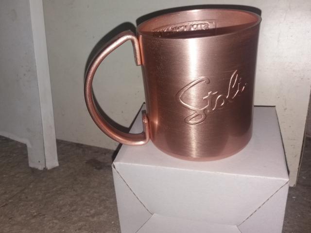 Nauji puodeliai. Lengvas metalas, vario spalvos. Užrašas Stoli. Tinkamas kokteiliui Moscow mule ! https://en.wikipedia.org/wiki/Moscow_mule Puodelio aukštis: 9cm; talpa: 350ml Kaina už 6vnt.