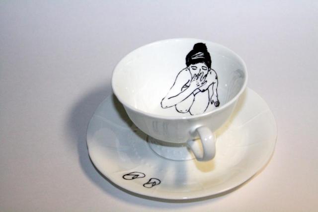 Puodelis su mergina viduje
