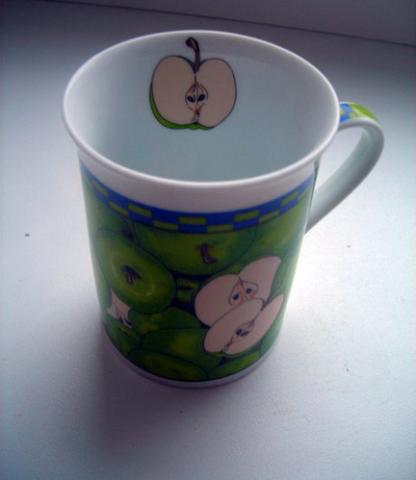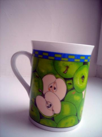 Puodelis su obuoliukais