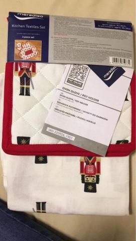 Dvi puodkėlės ir prijuostė su spragtuku. Tinka dovanoms, nauji.