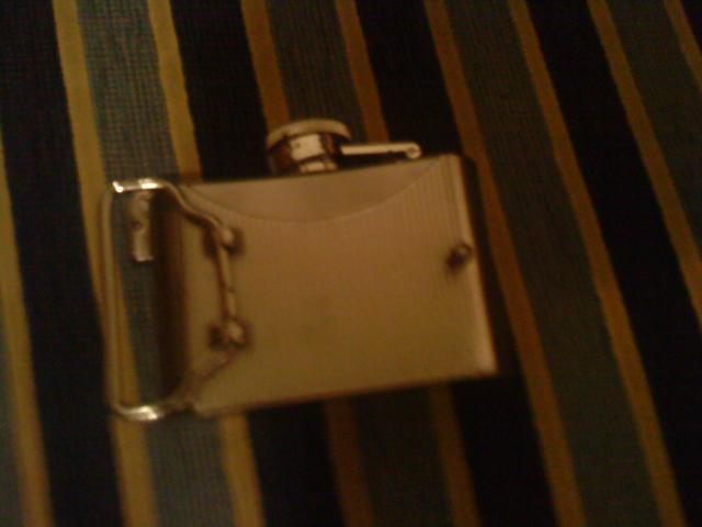 Funkcionali bei puošni diržo sagtis su "fleške" į kurią galėsite įsipilti savo paslaptingo serumo prieš eidami į klubą. Domina mainai ir pinigai. Būklė labai gera.