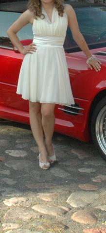 Užsidėta tik vieną kartą, per išleistuves. Tikrai labai graži suknelė. Graikiško stiliaus, lengvai krintanti. Jokių defektų nėra. Dydis: 36. Kreiptis galima el. paštu: laura7771@gmail.com ir telefonu 8 636 71935 (Laura)