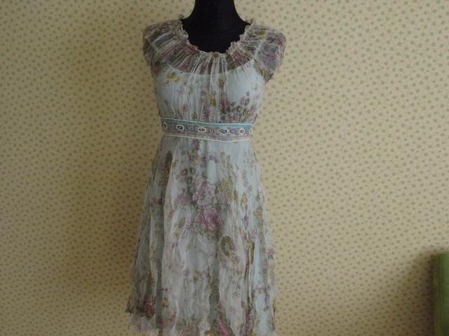 Karta vilkta suknute. Susideda is 2 daliu : apatinuko ir virsutines dalies, kuri labai lengvos krentancios medziagytes. Nugaroje risasi kaspinas. Mokejau 400lt., DEFEKTAS : po pazastimi ties uztrauktuku yra iplysimas, bet siuvejos pagalba galima sutvarkyti.