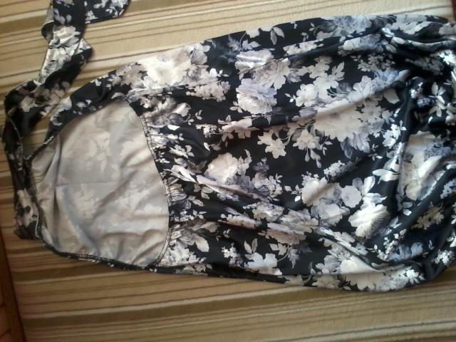 Trumpa (ilgis nuo kaklo apie 80cm) pilkšvų atspalvių suknytė. Tiktų xs/s dydžiui. Nugara atviroka, priekis uždaras, raišteliais užrišama už kaklo :) Yra defektukas - keletoj vietų išsipešę siūliukai. Tačiau kadangi suknytė marga užsidėjus visiškai nesimato. Turiu jau ilgokai, bet užsidėjusi buvau gal kokius 3 kartus.