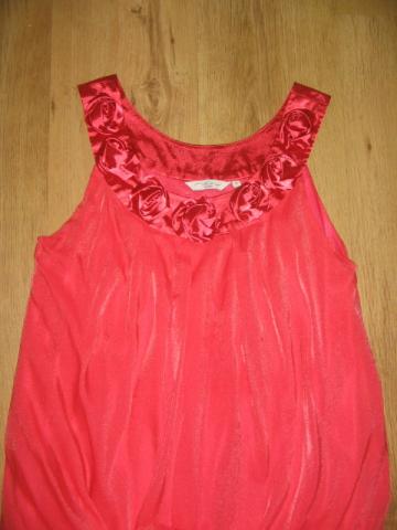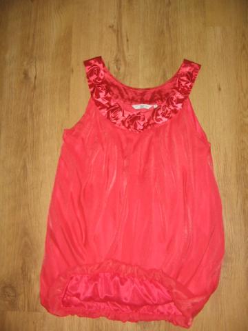 Dėvėta tik kartą per šventę. Labai puošni, patogi, lengva, kelių sluoksnių, lengvai krenta, apačia su gumute paraukta. Graži koralinė spalva, medžiaga blizgi. Dydis universalus nuo s - l