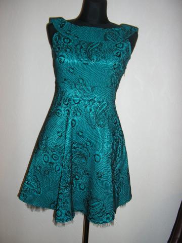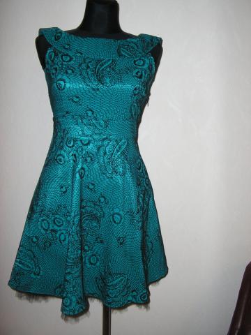 Puosni suknele, spalva zaliai melva, elektrine. Ilgis 88cm, dydis 38/40. 75%viskoze (medvilne) 20%neilonas 5%elastanas