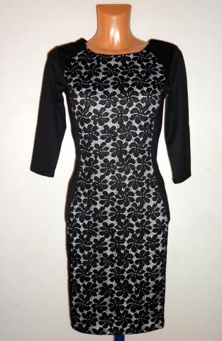 Graži suknelė 3/4 rankovėmis, priekis puoštas puošniu gipiuru . Nugaroje segasi paslėptas užtrauktukas. Sudėtis : 65 proc. medvilnė, 35 proc. polisteris. Su Kaunietėmis galiu susitikti.