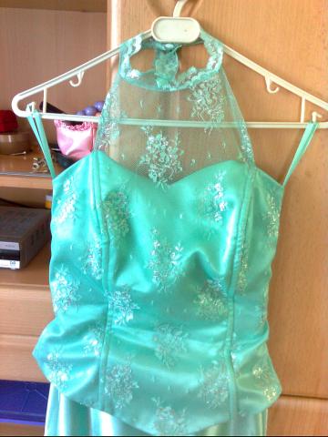 Zalzva suknele,dvieju daliu; korsetas,sijonas yra ir salis. Viena kart aprengta.Domintu keitimas i trumpa suknele. 80lt