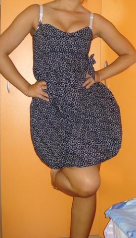 Puošni gėlėta suknytė. Vieną kartą užsidėta. Puikiai laikosi ant krūtinės ir be liemenuko. Viduje ties krūtine yra lankai, kurie puikiai prilaiko krūtinę. Be šleikučių. Visa viršutinė dalis korceto principo. Gale užtrauktuku užsisega. Aš nešioju S dydį, man puikiai tinka, nors suknelė XS dydžio.