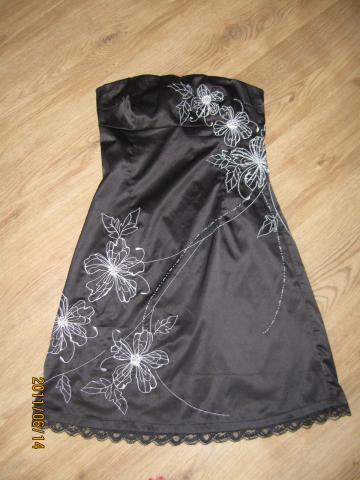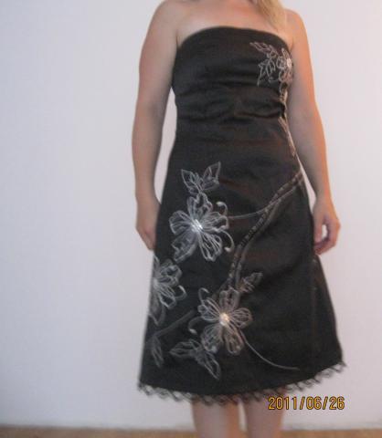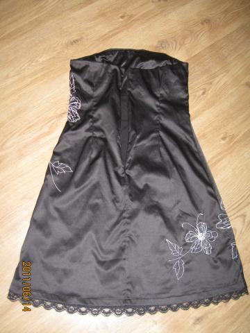Juoda atlasinė siuvinėta suknelė