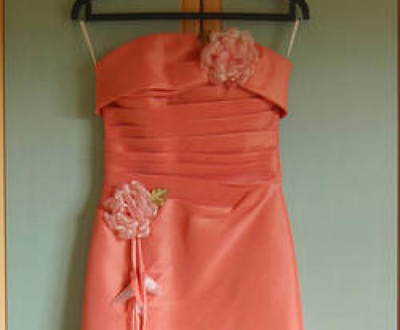 Vieną kartą dėvėta, labai puošni, proginė suknelė. Prie jos yra priderintas šalis. Dydis S/M