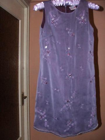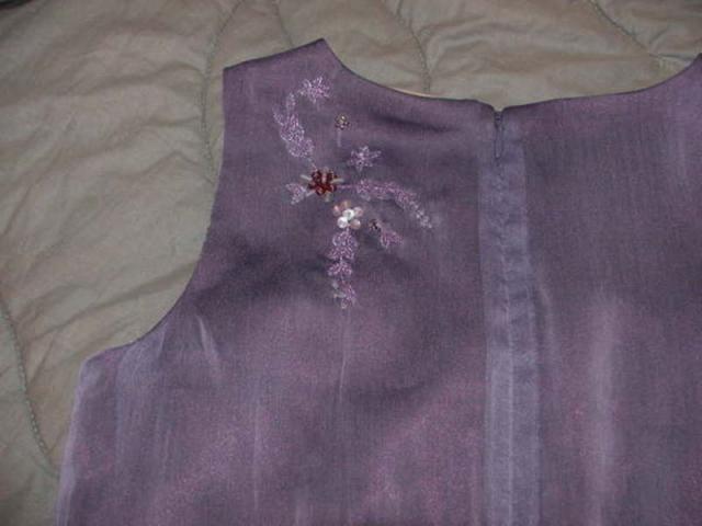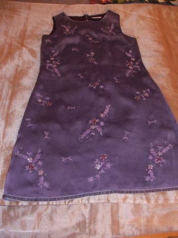 140cm Siuvinėta karoliukais, nė karto nedėvėta. Turi ploną pamušalą. Nugaroje užsisega užtrauktuku, šonuose yra skylutės, todėl galima užsirišti kaspiną. Visas ilgis ~77cm, krutinės apimtis ~80cm.