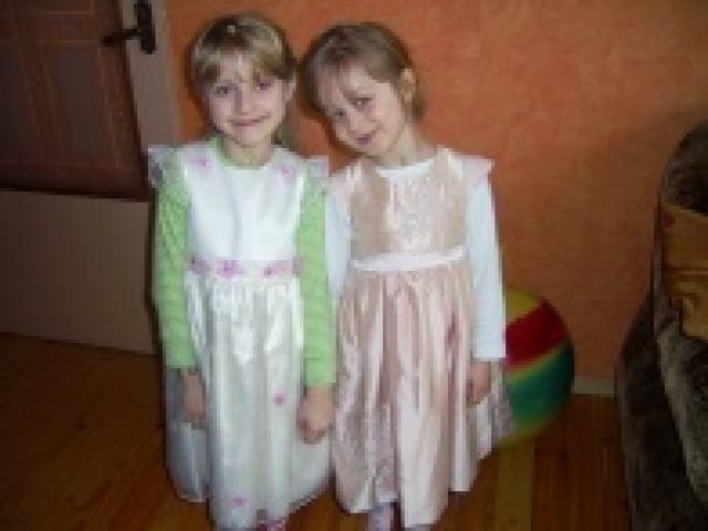 Po kartą apsivilktos suknelės mažoms mergytėms abi apie 110 cm