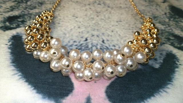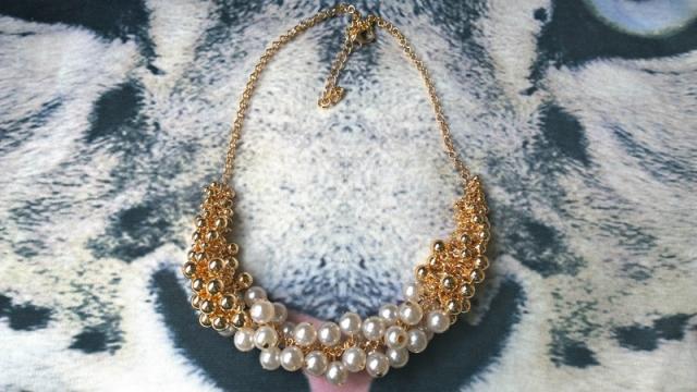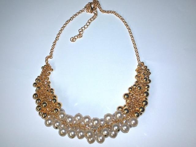 ♥Labai puošnus ir kerinčio grožio kaklo papuošalas, puoštas baltais ir aukso spalvų perlais. ♥Ilgis 45 cm