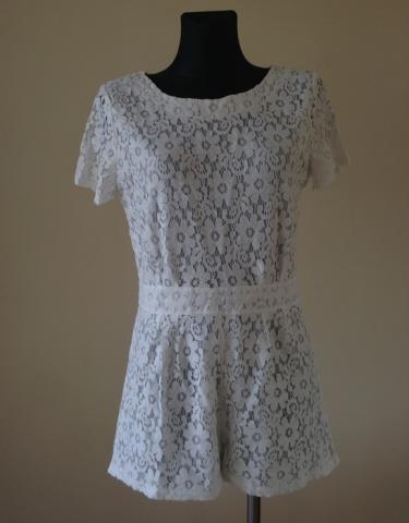 NAUJAS *dydis: 42/14 Puošnus kreminis gipiūro kombinezonas / Absolutely & Faith *stilingas, subtilus ir elegantiškas rūbas; *su užtrauktuku nugaroje ir pamašalu; *pečiai: 40cm; *krūtinė: 102cm; *liemuo: 81cm; *klubai: 102cm; *ilgis: 75cm( šortukų 32cm); *klešnės plotis: 75cm; *rankovyčių ilgis: 9cm; mažiau Sudėtis: medvilnė, poliamidas; pamušalas: poliesteris;