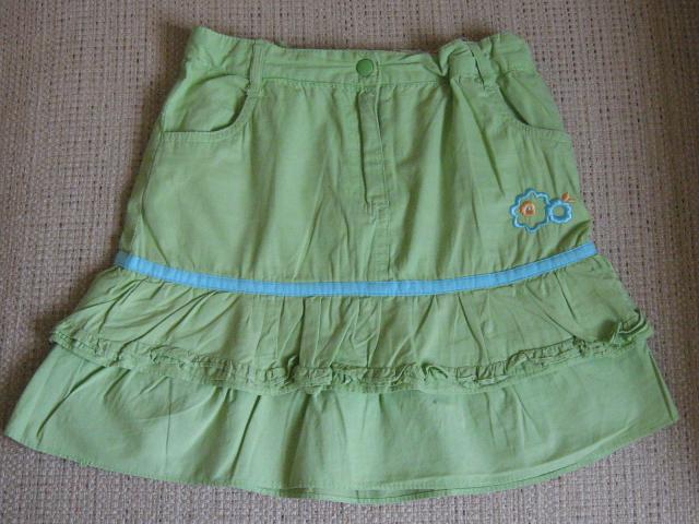 Puošnus žalias sijonas, skirtas 6 metų mergaitei (116 cm).
