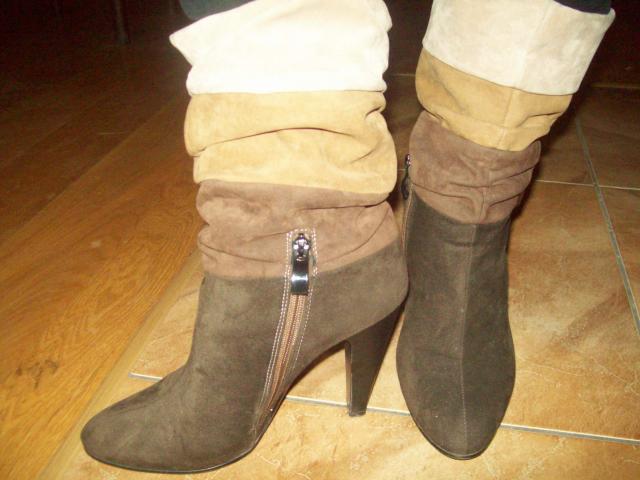 Labai stilingi, keturių spalvų, nauji zomšiniai batai. Dydis 40. Kulnas ~11 cm