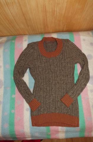 Visiškai naujas. Nei karto nebuvo užsidėtas, nes man rankovės šiek tiek per trumpos. Šiltas, pusvilnonis, minkštas. Labiau tiktų nešiojančioms XS 50% wool ; 50 % acrylic