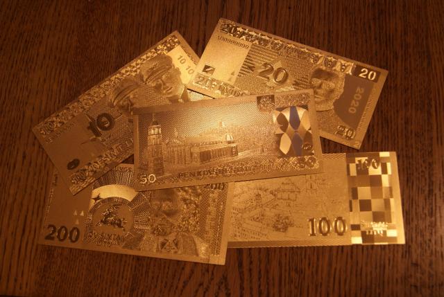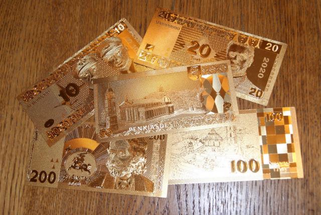 už visus 20 eur, Padengtas 24 karatų aukso folija (palyginimui - plauko storis 70). Su sertifikatu.