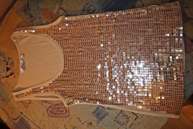 Parduodu rudą "Disco" stiliaus, blizgančią bliuskutę, nei karto nedėvėtą.