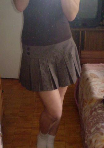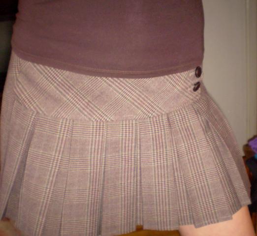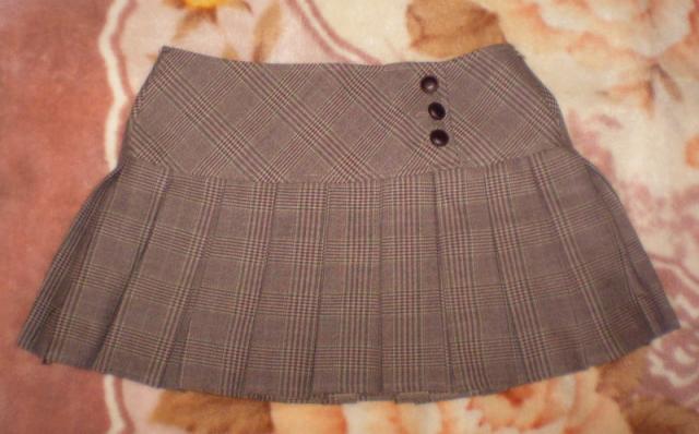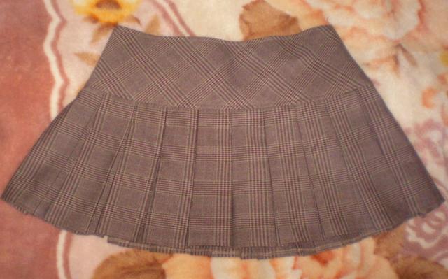 Labai simpatiškas, klostuotas sijonas. Graži medžiaga, primena "old school'ą".