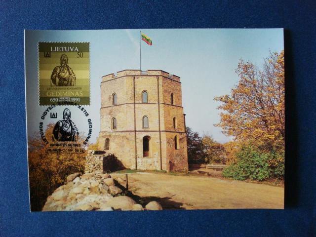 "Gedinimo pilies bokštas" atvirukas su 1991 "Gedinimas" pašto ženklu.