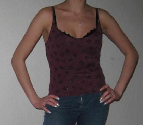 H&M firmos maikutė su blizgančiom rožytėm. Iš tamprios medžiagos, tad tiktų 34-38 dydį dėvinčioms merginoms