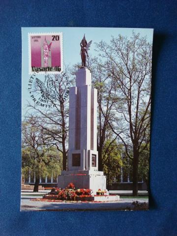 "Laisvės paminklas" atvirukas su 1991 "Vasario 16" pašto ženklu.