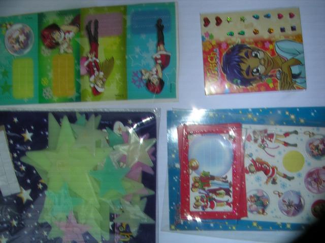 Žurnalo "Magija" priedai, auskariukai nenaudoti, priklijuojamos žvaigždės naudotos, bet visos sudėtos atgal į pakelį, o lipdukų lapeliuose trūksta poros lipdukų