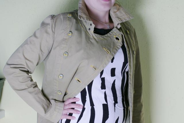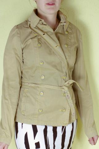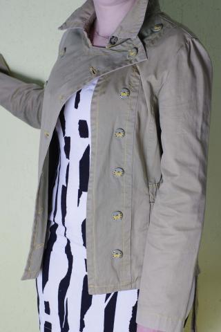 Stilingas chaki spalvos HOUSE švarkelis. Standi praktiška medžiaga, bet 100 proc. medvilnė, todėl nors vėjas neperpūs, bet karšta irgi nebus.