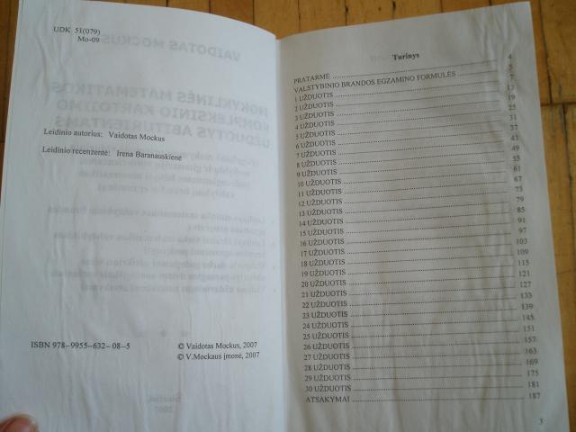 Vaidoto Mockaus knygelė "Mokyklinės matematikos kompleksinio kartojimo užduotys abiturientams". 10 LT, 8 688 54 018