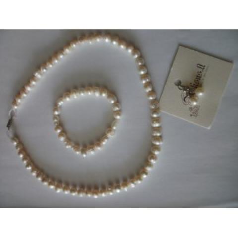 Dirbtinių perlų rinkinys iš karolių, auskarų, apyrankės. Yra be apyrankės..