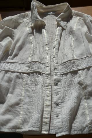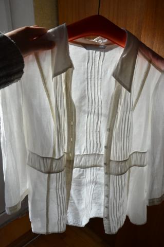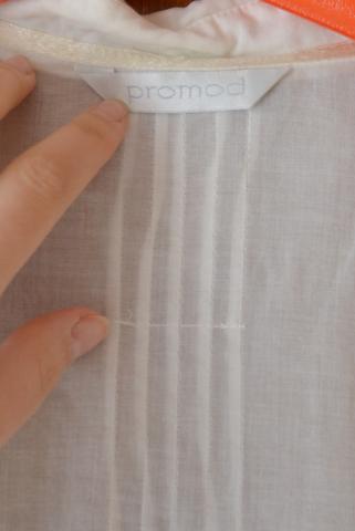 100 % medvilninė "Promod" palaidinė - lengvutė, labai malonios dėvėti medžiagos. 3/4 rankovės. Dailios sagutės, paraukimai. Dydis M / L. Išmatavimai: ilgis nuo peties iki apačios - 55,5 cm; rankovės ilgis - 43,5 cm; ilgis nuo peties iki peties - 38,5 cm; ilgis nuo pažasties iki pažasties - 49 cm.