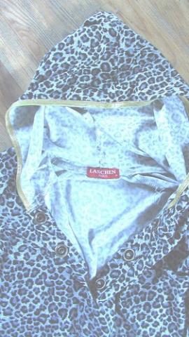Tamprus, leopardiniais ornamentais, kapišono kraštai apvesti juostele auksine, kaklas šiektierk atsisega, Yra ilgas galima nešioti ir su tympomis kaip tuniką ir su kelnėmis.M dydis. Jeigu 38, manau dar gražiau atrodytų nei 40.