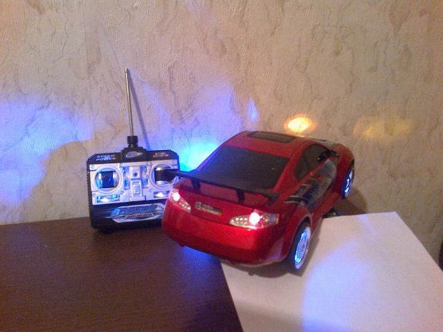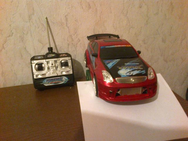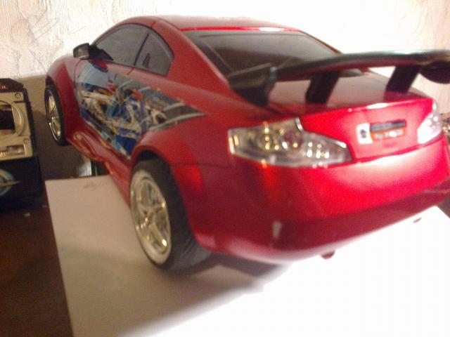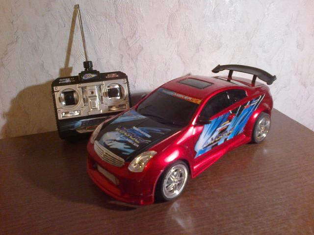 Puikiai veikianti radio bangomis valdoma masina veikimo atstumas nuo 5 iki 10 metru Trukumai: 1. dezes nera 2. keletas dazu nutrinimu Na o siaip tvarkinga gerai lekianti masinele matmenys : ilgis 29 cm. aukstis 10 cm. Maitinimas baterijos Valdymo pultas 9V krona masinele: AAx6