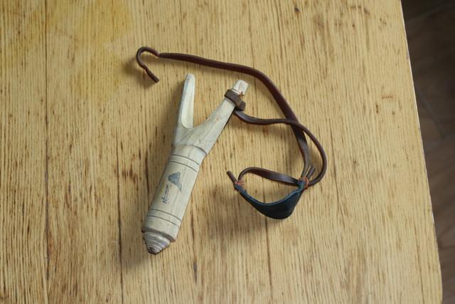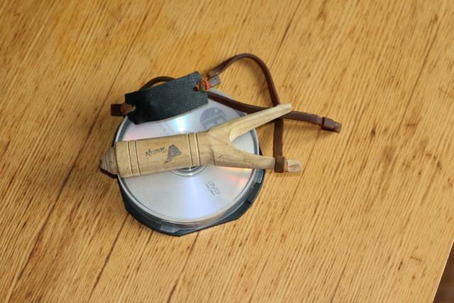 PIrkta Tenerifėje prieš porą metų. Mes ttenerifėje su tokiomis ragatkėmis šaudėme krabus (poto juos virėme-niam niam skanumėlis) Tai peršaudavo krabo kiautą kiaurai. Rimtas daiktas - tikrai ne žaislas, nes gali sužaloti. Guma vienoje vietoje atsirišusi, ten su tokiomis mažomis gumytėmis būdavo pritvirtinta. Galima sutvarkyti, kad ir paprastu siūlu. Kompaktai šalia padėti, kad orientuotis kosk jos dydis.
