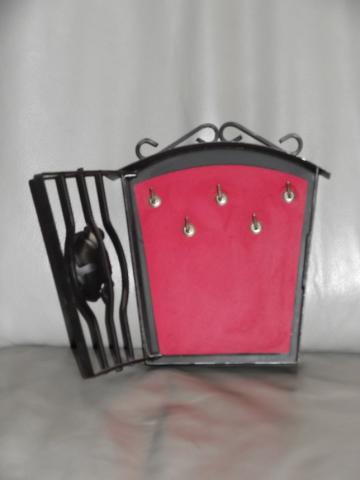 Metalinė raktinė su dekoratyviomis durelėmis. Tvirtinama prie sienos.